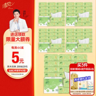 清风抽纸 原木2层200抽*20包S码 软抽 亲肤无刺激 面巾纸 餐巾纸 整箱