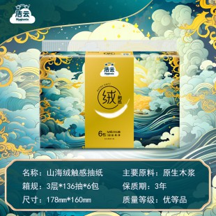 洁云抽纸 山海绒触感3层136抽*6包 中规格 可湿水面巾纸家用卫生纸巾