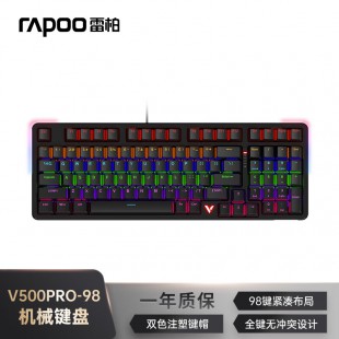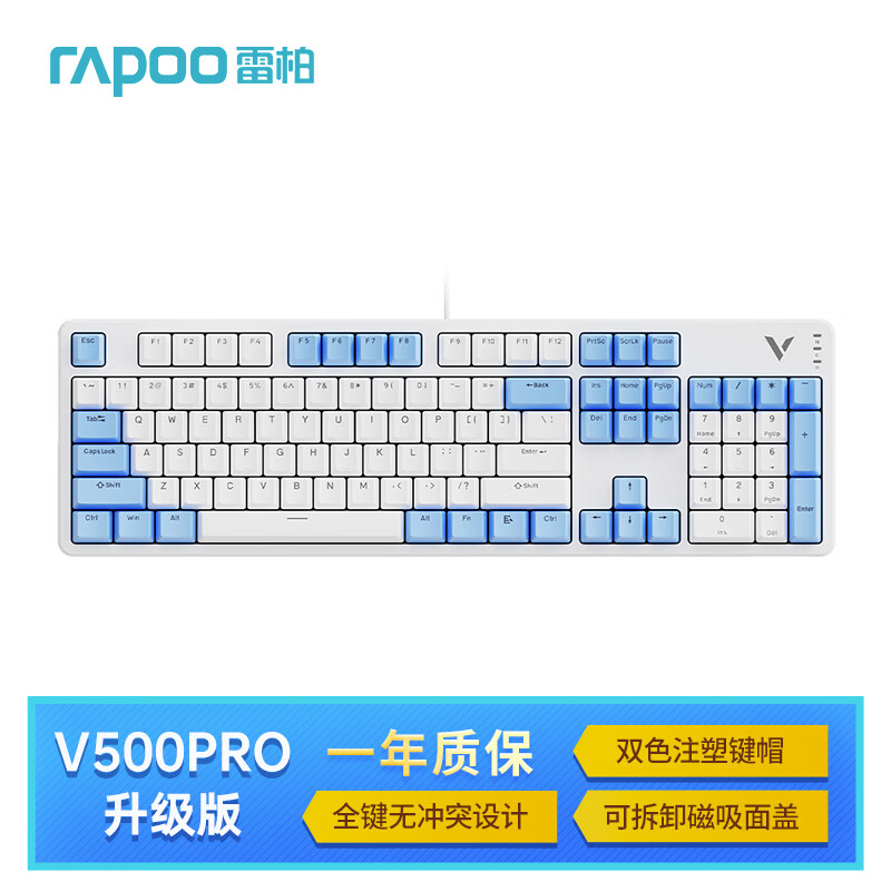 雷柏(Rapoo) V500PRO 有线背光机械键盘 104键全尺寸游戏电竞笔记本电脑多媒体办公吃鸡全键无冲键盘 茶轴