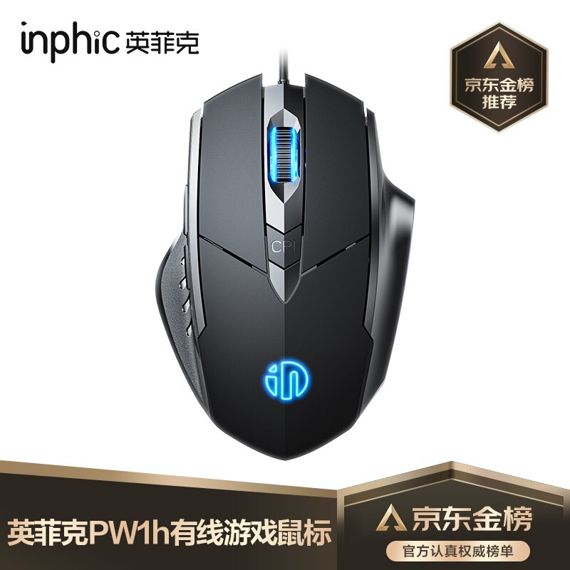 英菲克(INPHIC)W1 有线游戏鼠标宏定义人体工学轻音家用办公笔记本电脑台式USB通用 黑色