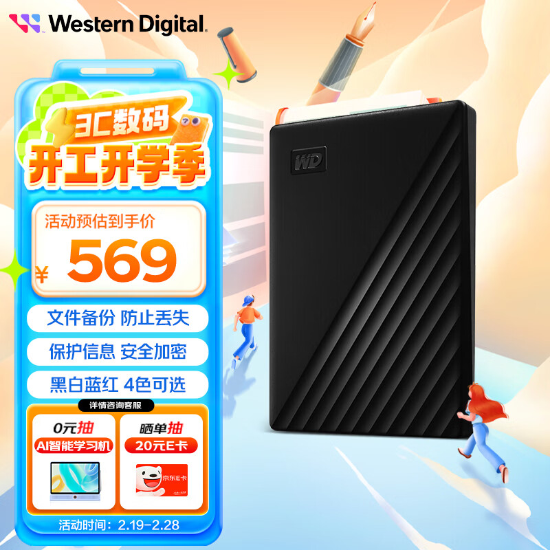 西部数据(WD) 移动硬盘 USB3.0 My Passport随行版2.5英寸 黑 机械硬盘 手机笔记本电脑外接 家庭存储