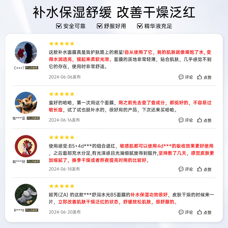 姬芮(ZA)【B5含量排行前3】玻尿酸舒润水光B5补水保湿舒缓面膜