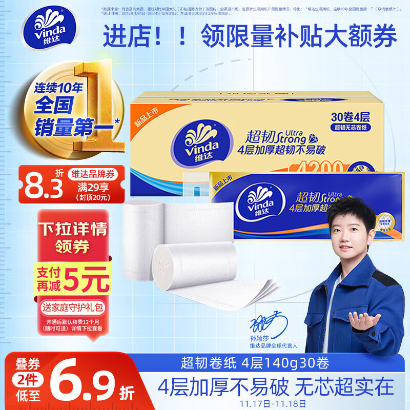 4层 140g/卷*30卷 【超值无芯款】 (+¥64.81)