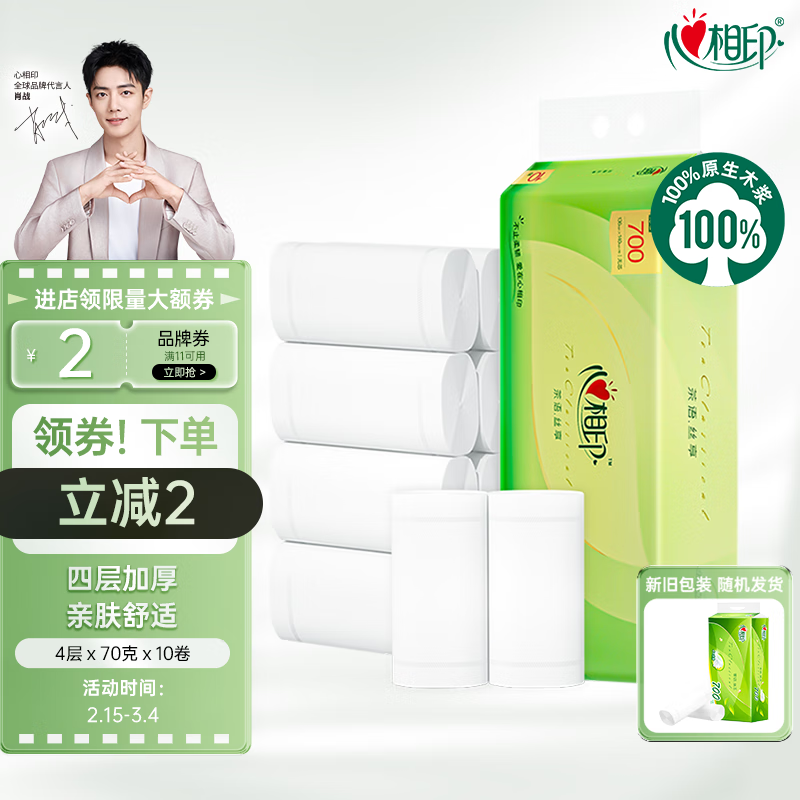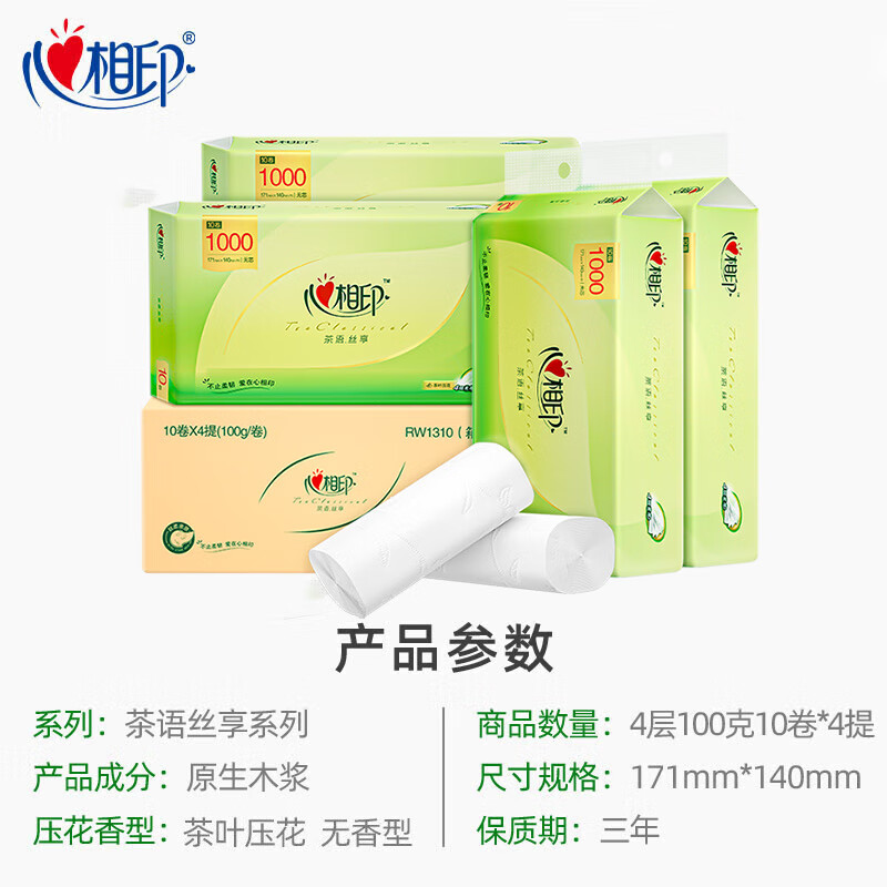 心相印无芯卷纸【肖战同款】茶语丝享4层100g*40卷 纸巾整箱(新老交替)