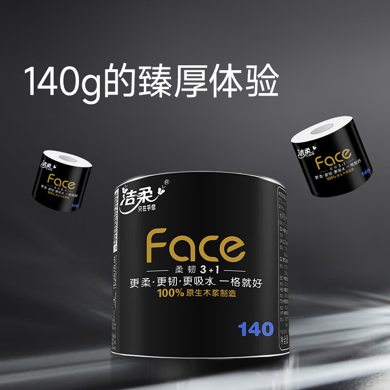 洁柔卷纸(C&S) 黑Face 加厚4层140g卫生纸巾*30卷 ( 面子系列 柔韧升级母婴可用 冲厕易降解)整箱销售