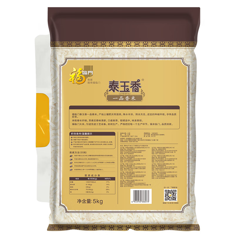 福临门泰玉香一品香米5kg*4/箱 (+¥108.57)