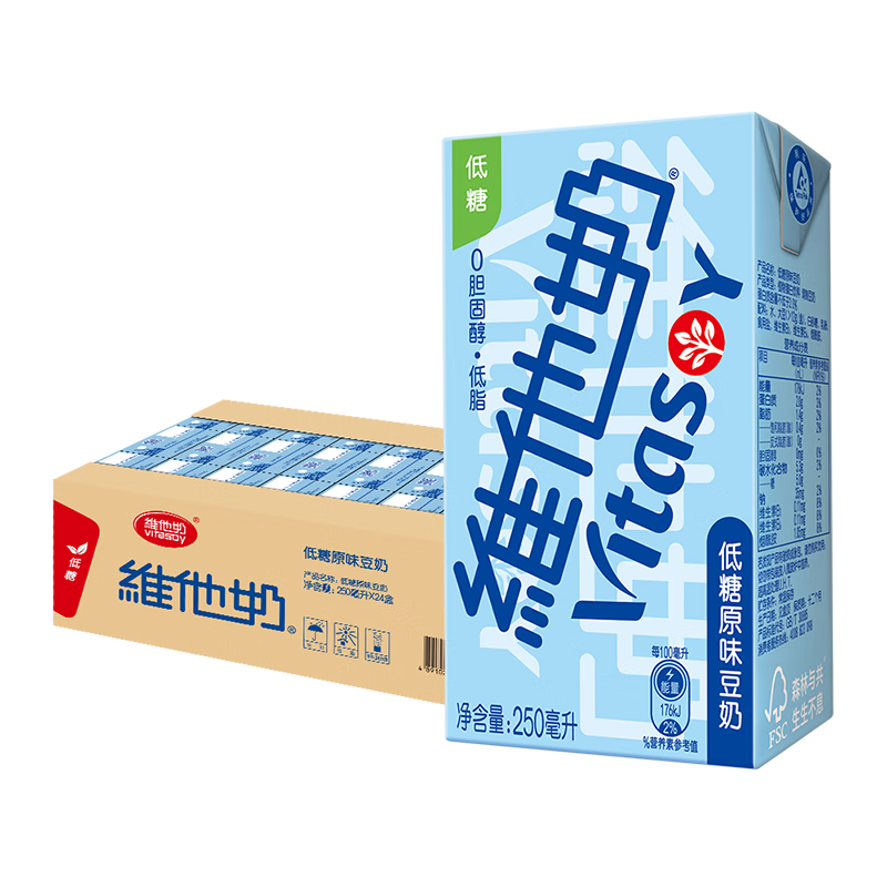 维他奶低糖原味豆奶植物蛋白饮料 250ml*24盒低糖营养早餐豆奶家庭备货