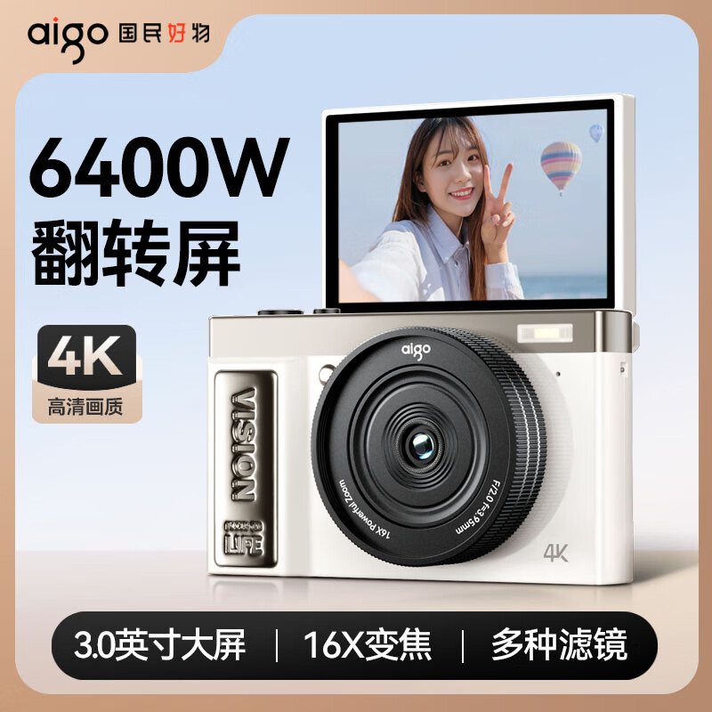aigo爱国者E9/D9翻转屏自拍学生数码照相机生日礼物女生入门校园高清旅游平替ccd 白色带广角镜